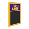 The Louisiana State University Chalk Note Board is perfect for keeping score or writing messages in any fan cave, game room, office or dorm. Our note board wall sign is injection molded with it's high-resolution digitally printed face, high gloss finish, and silk-screened chalkboard surface and will provide hours of use while adding a finishing touch to any room. Mounting hardware and write on-wipe off marker included. This is an officially licensed product of LSU and made in the USA.